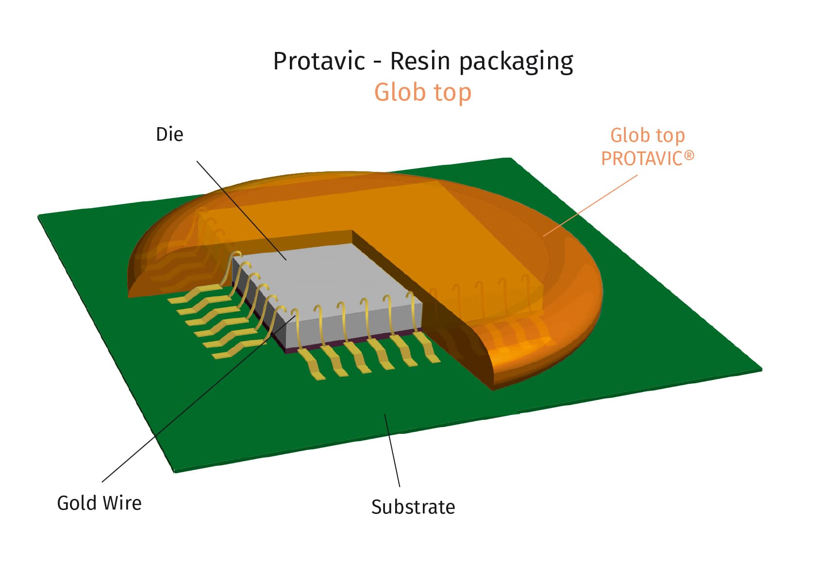 圆顶包封胶在小尺寸的芯片上可以实现相同的保护效果。